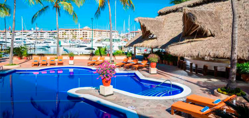 Este acogedor hotel, ideal tanto para viajeros de placer como de negocios, se encuentra en la exclusiva zona de Marina Vallarta, al norte de Puerto Vallarta. A pocos pasos, encontrarás una vibrante marina con impresionantes yates, un malecón con restaurantes, tiendas y galerías de arte. El aeropuerto internacional está a solo cinco minutos, mientras que las playas y el centro de Puerto Vallarta, con su animada vida nocturna, se encuentran a diez y quince minutos respectivamente. Completamente renovado en 2016, este hotel de cuatro pisos ofrece 96 habitaciones. Cuenta con un magnífico jardín, un elegante vestíbulo con wifi gratuito y La Palapa, un nuevo restaurante y bar que sirve deliciosas especialidades mexicanas e internacionales, ubicado frente al club de yates. Se ofrecen servicios de habitación y lavandería. Un servicio diario de minivan transporta a los huéspedes a una playa a dos cuadras del Malecón en el centro de Puerto Vallarta. Las elegantes habitaciones están equipadas con baño, teléfono, TV vía satélite, aire acondicionado, ventilador de techo, balcón o terraza y caja fuerte. Todas las habitaciones son de no fumar. Junto a los jardines y el restaurante, encontrarás una piscina con cómodos camastros. El hotel también cuenta con un mini gimnasio para que no abandones tu rutina de ejercicios. Por último, el hotel está a solo cinco minutos del campo de golf de 18 hoyos de Marina Vallarta. Ten en cuenta: no se admiten mascotas.