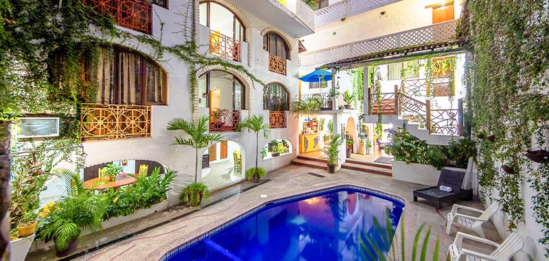 Disfruta de la piscina al aire libre, la terraza y el jardín en Hotel Hacienda de Vallarta Centro, céntricamente ubicado en Puerto Vallarta. El hotel ofrece wifi gratuito, servicios de conserjería y una sala de estar común. Cada una de las 51 habitaciones cuenta con TV por cable y baño privado con ducha, además de comodidades como ventiladores de techo y cortinas opacas. Hay recepción 24 horas y personal multilingüe a tu disposición. El hotel está a pocos pasos de Playa de los Muertos y la Church of Our Lady of Guadalupe, y con fácil acceso a otras atracciones populares.