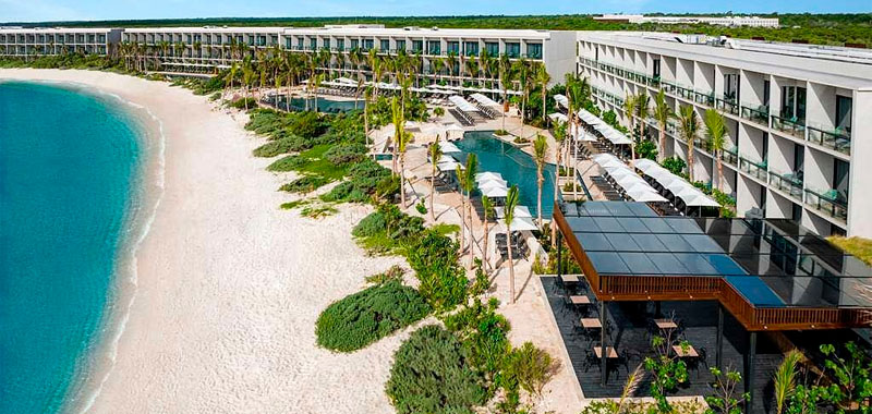 Ubicado en una bahía apartada, nuestro resort todo incluido en Tulum te ofrece vistas a arenas blancas y aguas azules. Pasa el día en nuestro spa de lujo, en una de nuestras 9 piscinas, 13 restaurantes y bares, en la playa privada o en la zona familiar. Estamos a menos de 30 minutos de cuevas subacuáticas, parques de atracciones y el centro de Tulum, y a menos de dos horas de la Reserva de la Biosfera de Sian Ka'an.